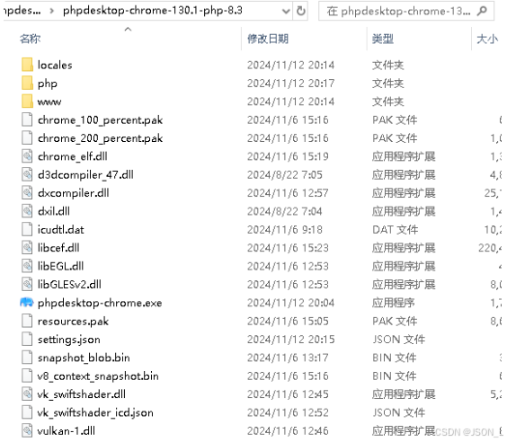 把下载的php desktop压缩包在本地解压,内容如下:
