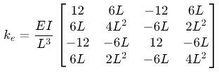 k_e = beam_stiffness(E, I, L);