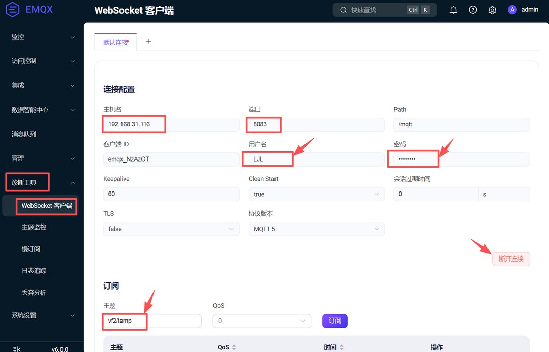 左侧工具栏 - 诊断工具 - WebSocket 客户端