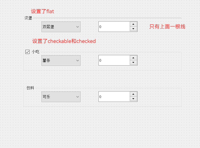 我们直接来看实例,在之前我们写过一个点餐功能,使用了下拉列表和微调框,然后使用标签来分别表示是哪一部分,但是现在可以直接使用分组框来进行分组