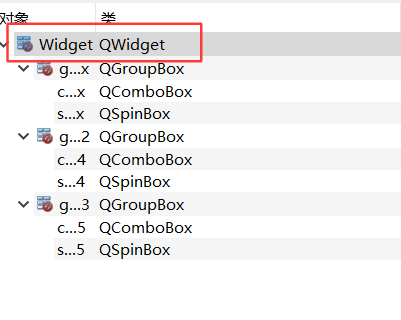 照搬之前的写法就行,只是写到了QGroupBox中,但是要注意一个点,如果是进行复制分组框,一定要选择复制到QWidget中,否则就成了QGroupBox的子对象了。并且在我们分组框中的控件的父元素不再是Widget(也就是this)了,而是GroupBox
