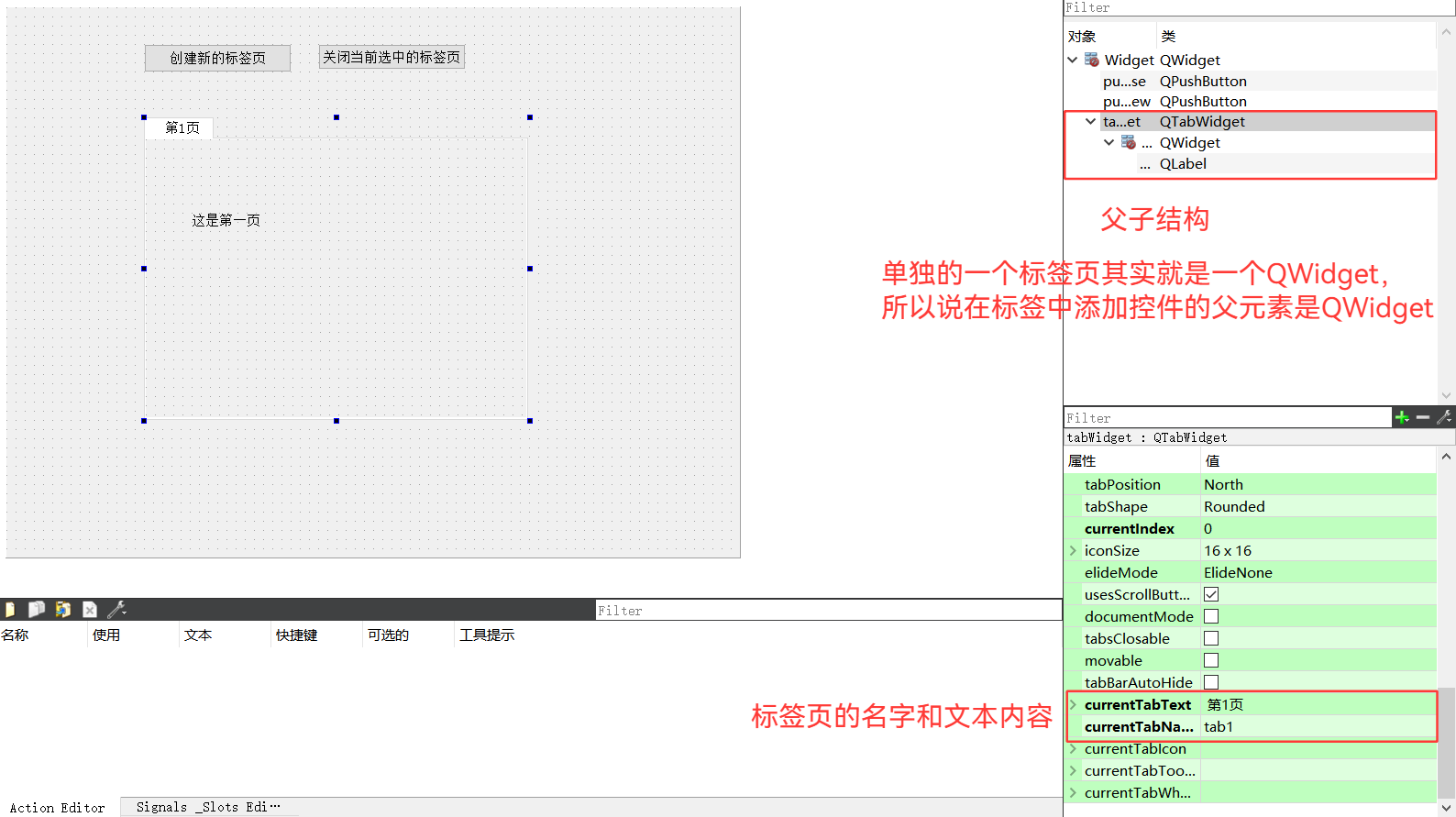 另外还要注意的就是上图画的,在我们创建标签页的时候还设置了一个label,它的父元素是QWidget