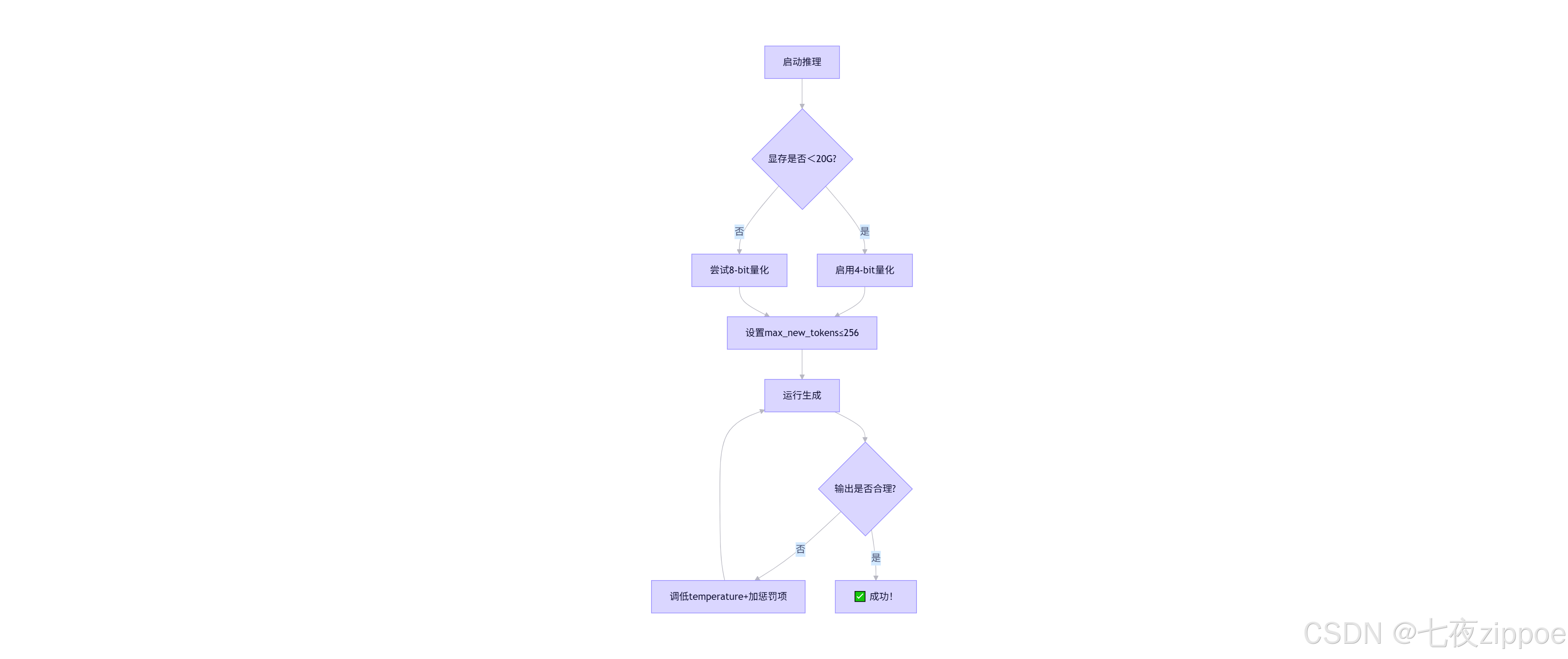 | 生成内容胡说八道 | temperature过高 | 调至0.6~0.8,加repetition_penalty=1.1 |