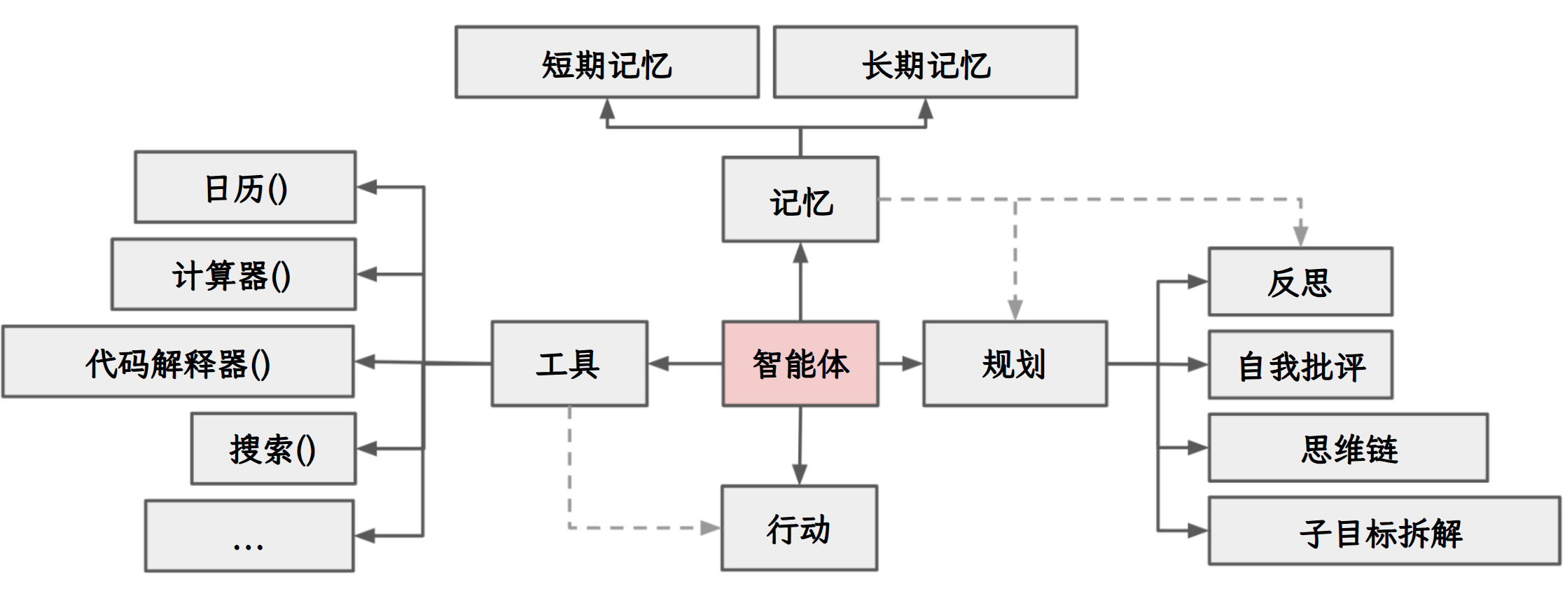- **案例:**LangChain 的 Agent 模块(如 ReAct Agent)结合工具,完成任务。
