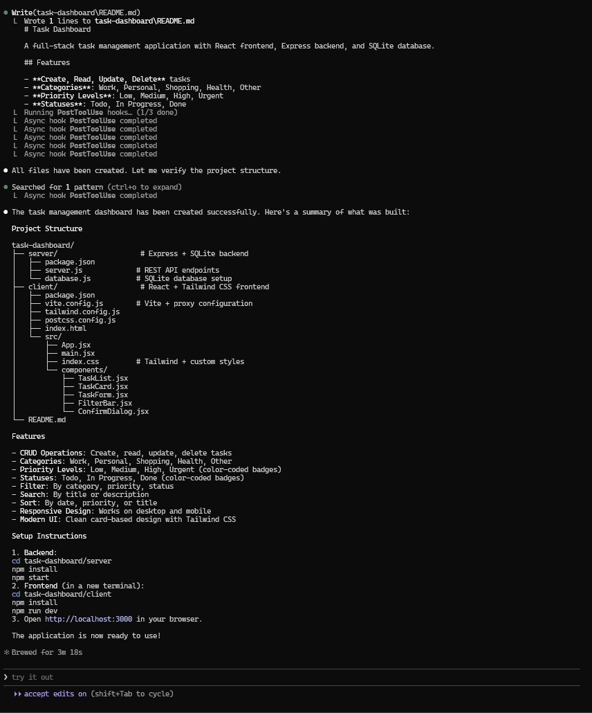 整个项目结构 --- 前端、后端、数据库架构、配置文件 --- 在不到 4 分钟内生成 --- 准确地说是 3 分钟,18 秒。
