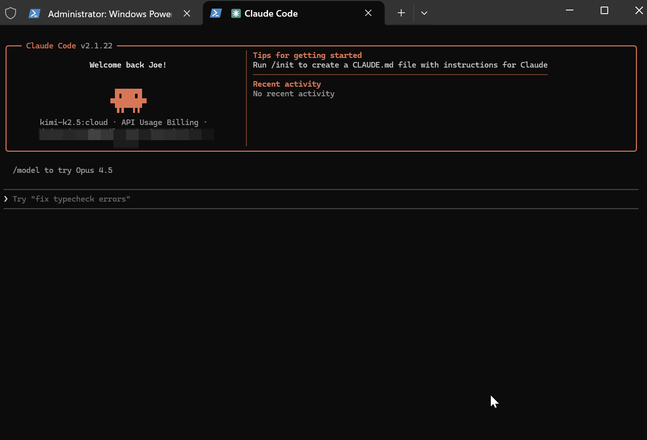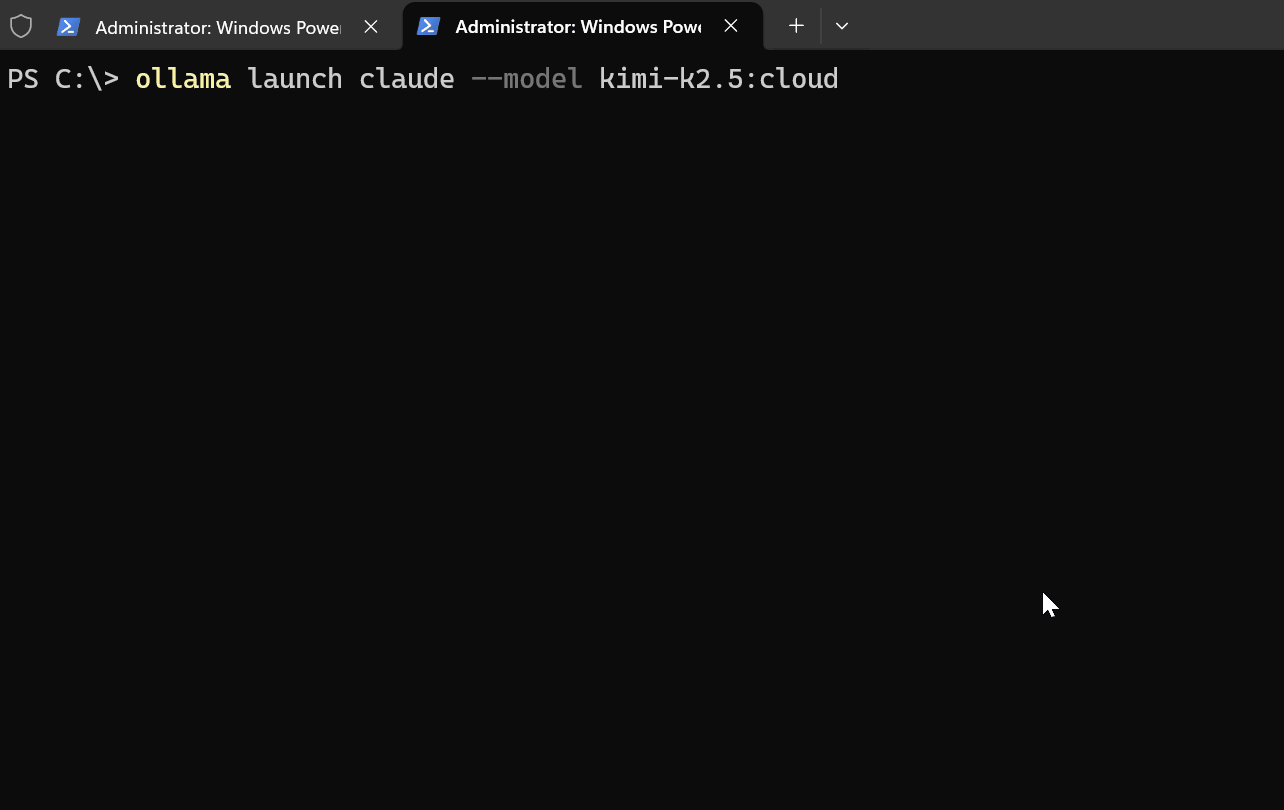 ollama launch claude --model kimi-k2.5:cloud