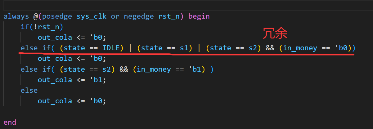 1. 下图画线代码冗余,只用判断少数的输出01和11的情况即可,其他情况均输出00。