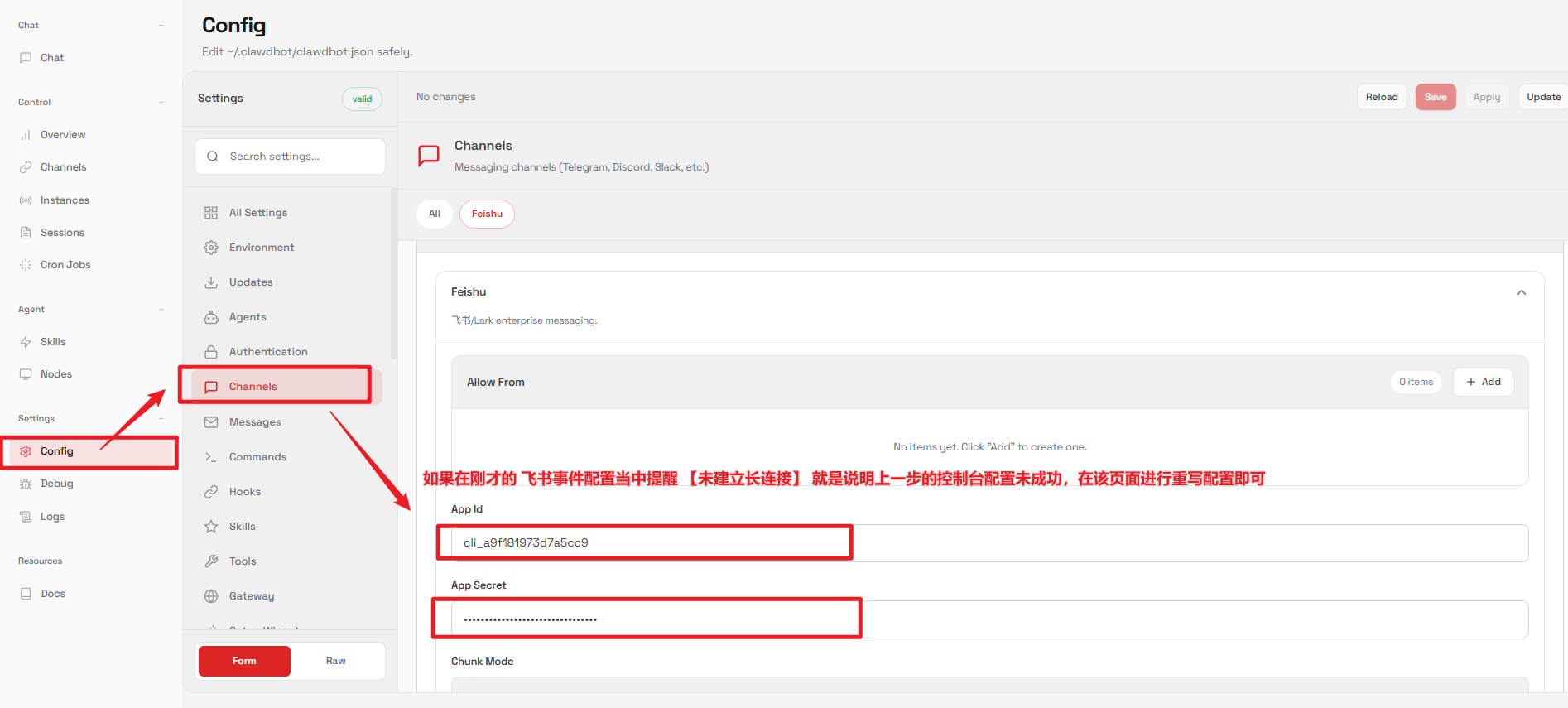 2.2 添加飞书 Channel(渠道)配置