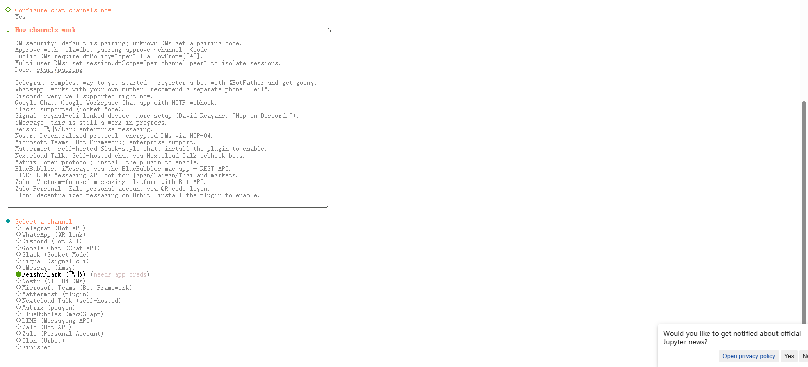 通过交互式命令行将飞书应用凭证绑定至 Clawdbot。