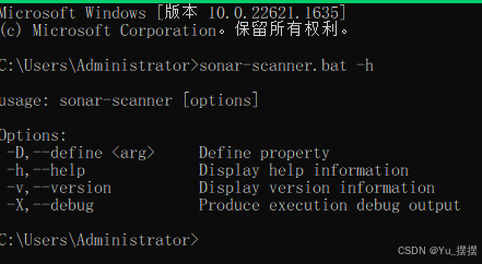 下载后解压,将安装目录\sonar-scanner-8.0.1.6346-windows-x64\bin添加到环境变量Path,cmd运行sonar-scanner.bat -h,输出帮助信息则安装成功