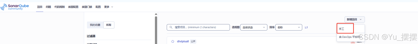 在sonarqube管理台新建项目,选择手工