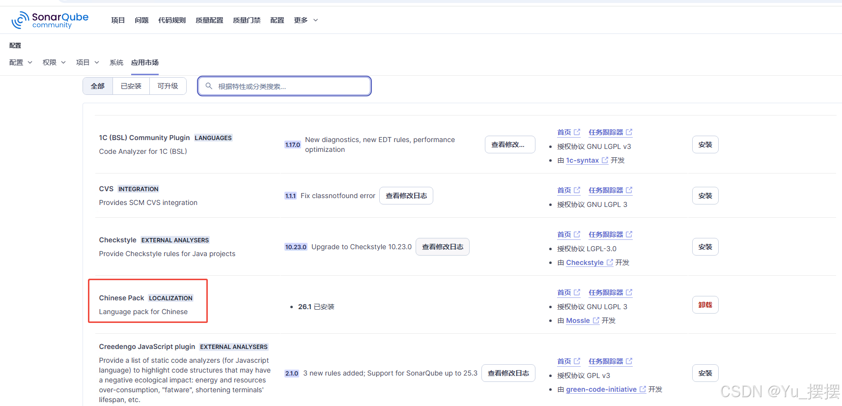 把下载的jar文件放到安装目录\sonarqube-26.1.0.118079\extensions\plugins,重启sonarqube