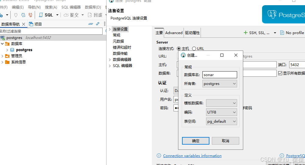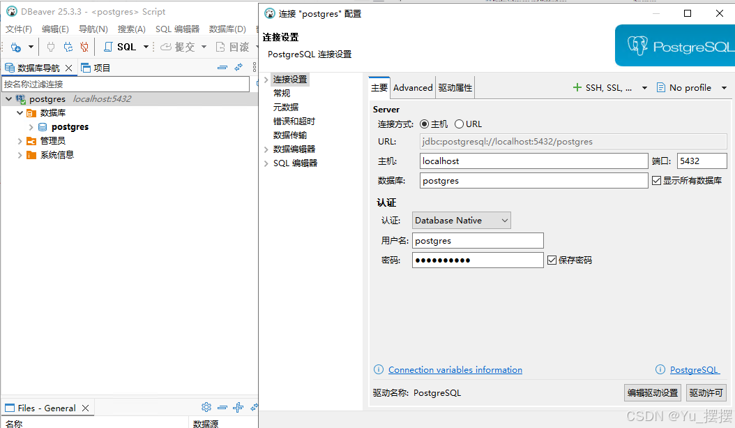安装完成后使用DBeaver连接postgres数据库