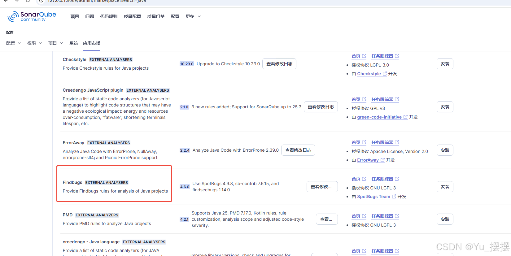 2.sonarqube内置很多扫描规则,如果觉得内置的不够详细,可以下载java第三方扫描规则findbugs