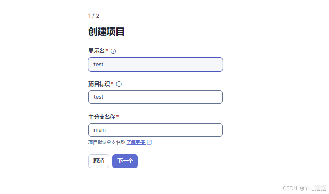输入项目名称,选择默认配置