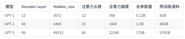 从被 BERT 压制的 GPT-1,到没有引起足够关注的 GPT-2,但 OpenAI 团队依旧坚定地选择了不断扩大预训练数据量、增加模型参数,在 GPT 架构上做出一些小的优化和修正,来不断探索更强大的预训练模型。在 GPT-2 的基础上,GPT-3 进一步增大了模型体量和预训练数据量,整体参数量达 175B,是当之无愧的 "大型语言模型"。