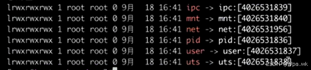 # 3. 进入进程信息文件夹,包含容器中各种命名空间