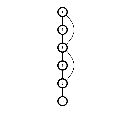 那割点有什么样的特征呢?我们可以看出3和5都是一个环的一部分,那么这时候就有人问了,如果上图中3-5这条边不存在,5仍然是割点呀,确实,但是由于是无向图,5可以到达4和6,同时4和6也可以到达5,那这不就说明4和5成环,5和6成环吗,所以我们得到第一个性质:割点是环的一部分。