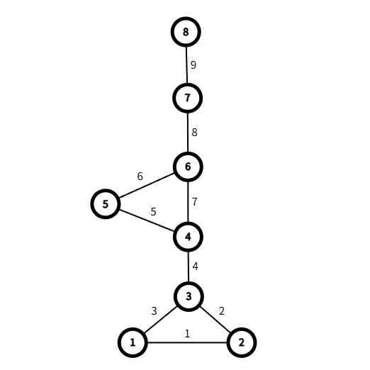 如上图边4,8,9是割边,理由类比割点。