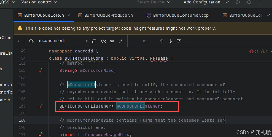 - mCore即为BufferQueueCore, BufferQueueCore中有成员 sp mConsumerListener