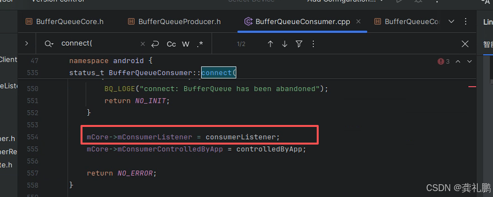 3.继续查看代码frameAvailableListener是mCore->mConsumerListener,也就是frameAvailableListener = mCore->mConsumerListener;