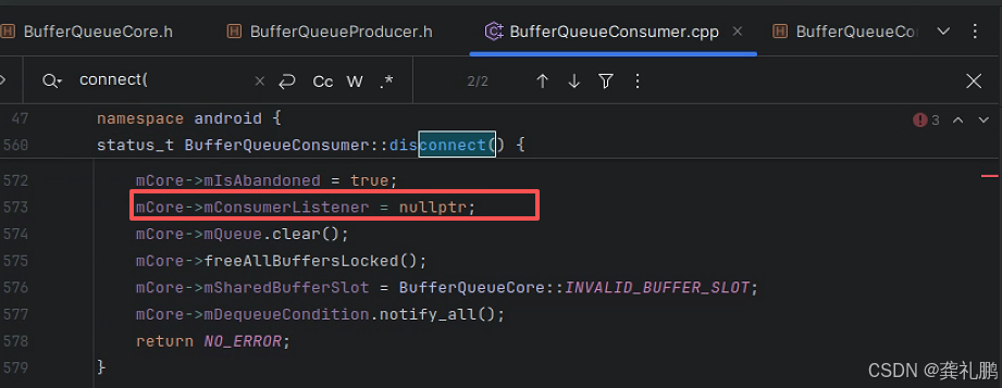 我们来看下BufferQueueConsumer.h中的代码,直接搜索connect和disconnect