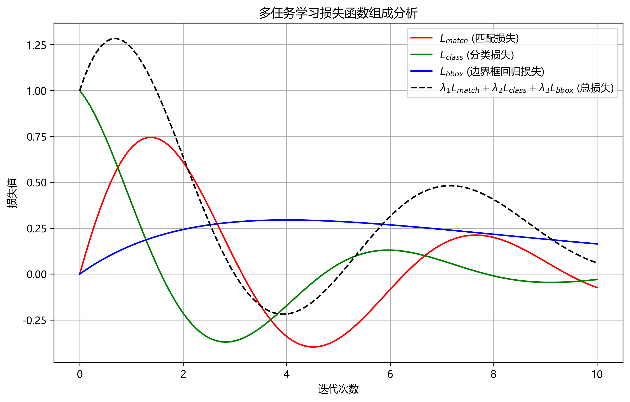 Ldet=Lmatch+λLclass+λLbboxL_{det} = L_{match} + \lambda L_{class} + \lambda L_{bbox}Ldet=Lmatch+λLclass+λLbbox