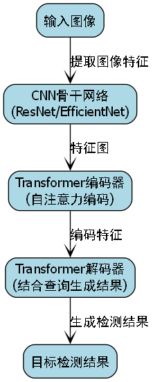 DETR的核心是将CNN和Transformer结合,实现端到端的目标检测。我们基于标准DETR架构进行了针对性改进,以适应花卉识别任务的特点。
