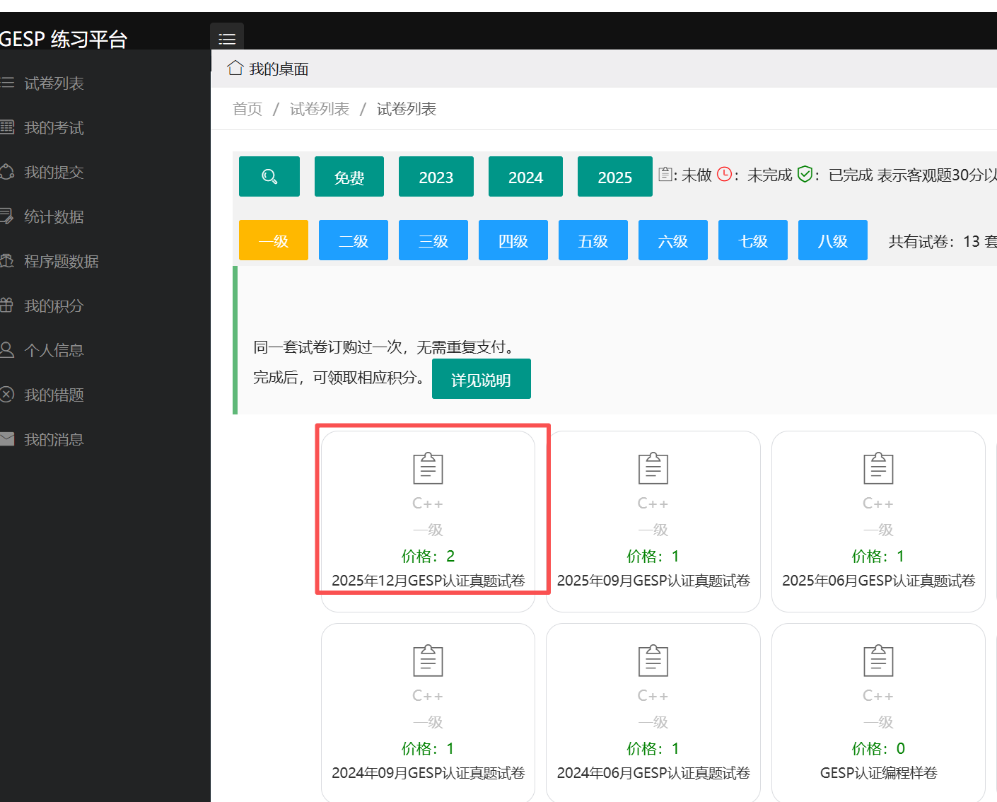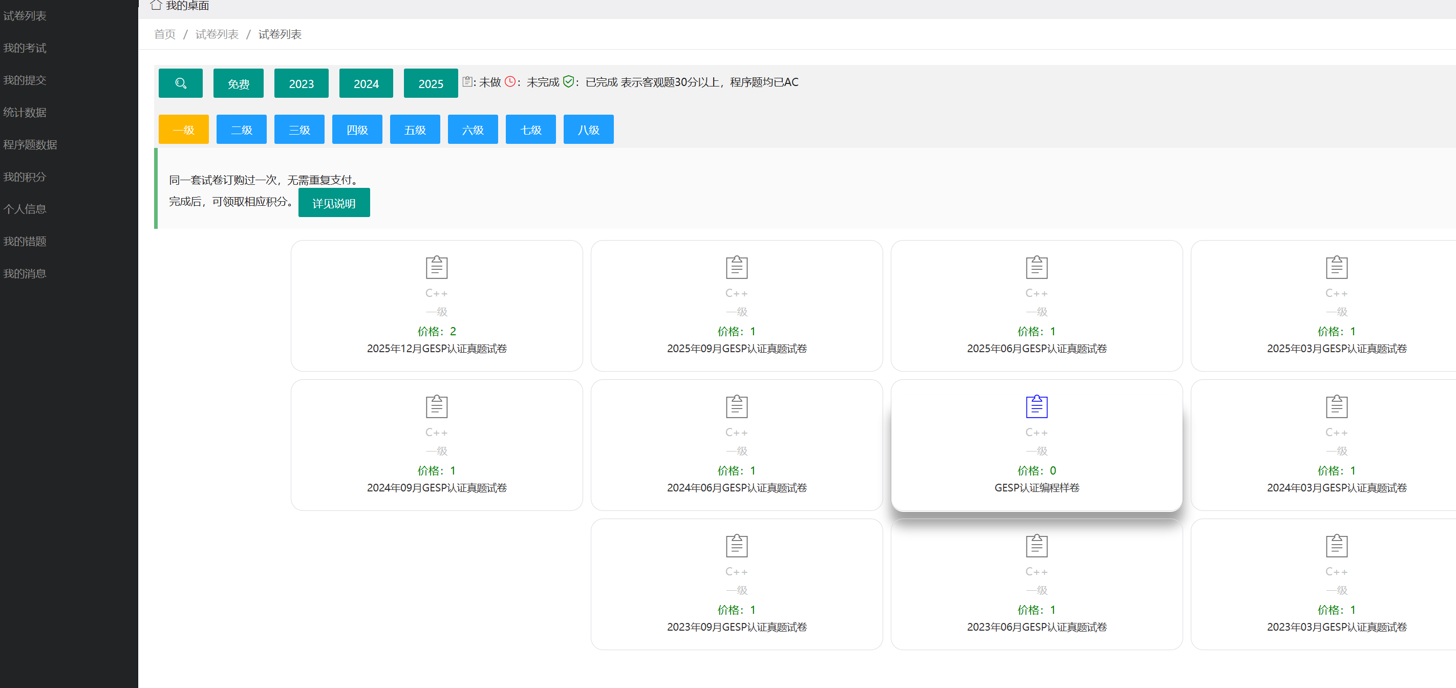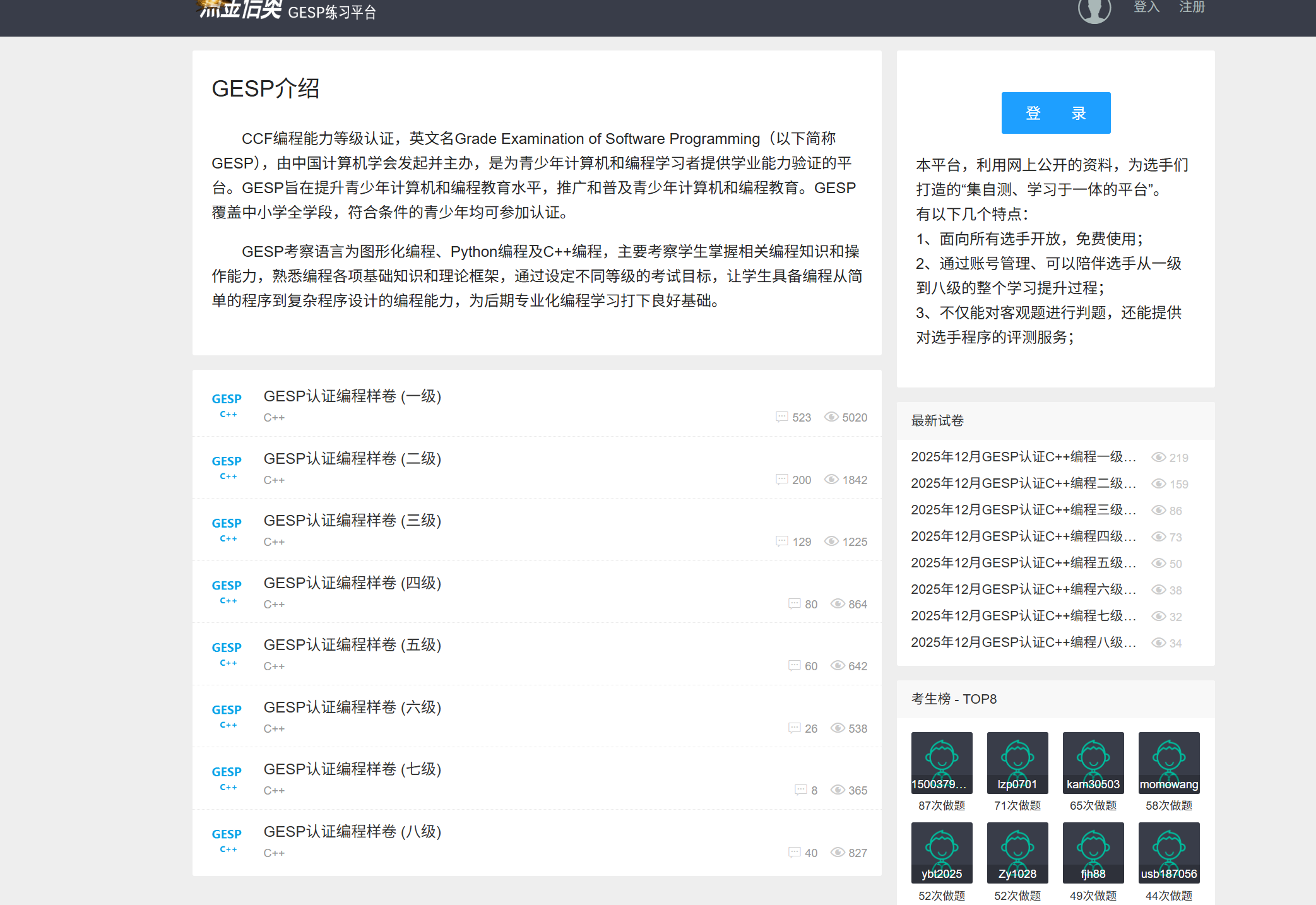 发现一个在线OJ网站,找一些GESP题目来做一下,发现这个网站。