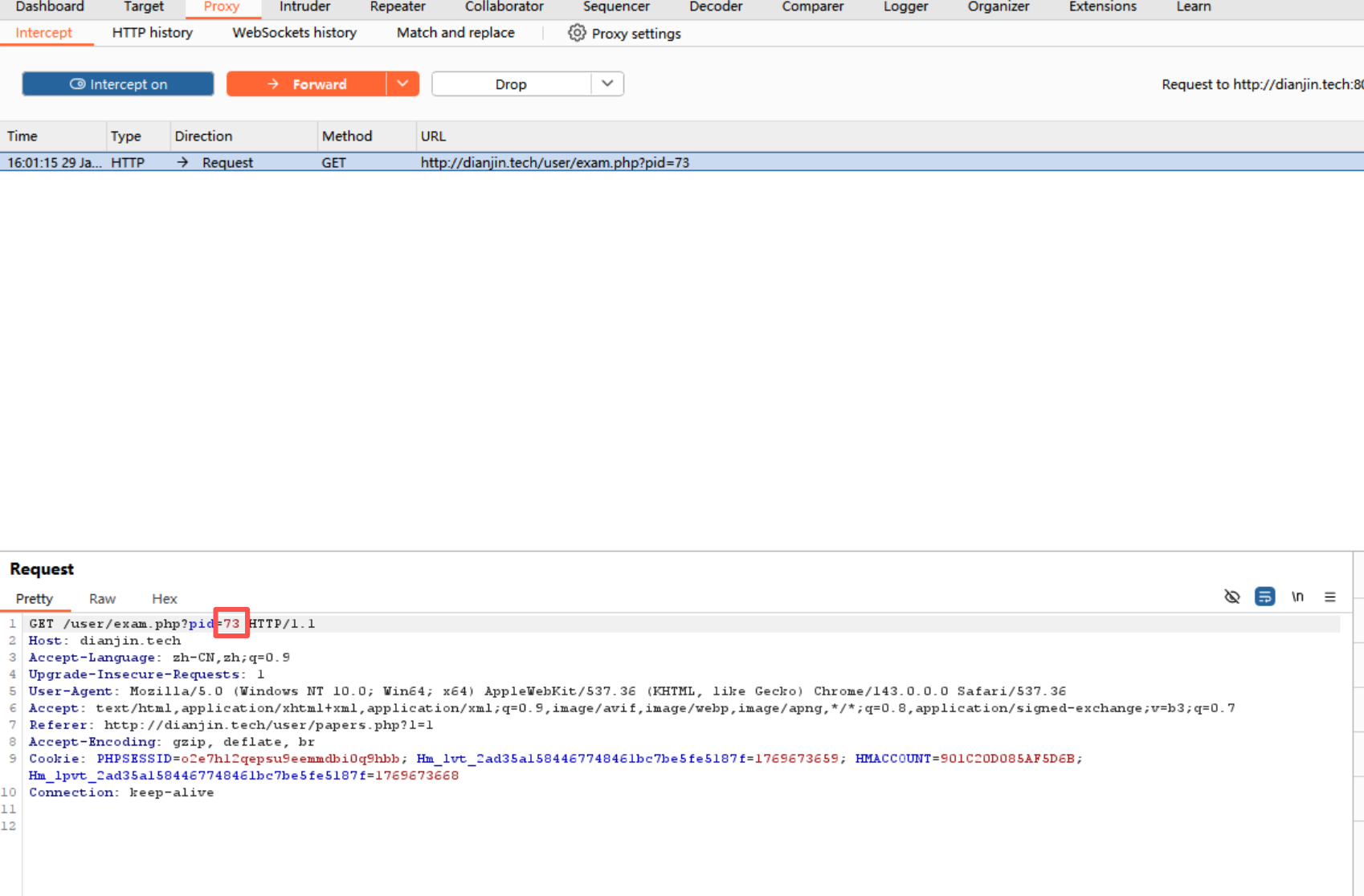 发现免费的这个样题的pid=73.所以想到一个方法,能不能用免费的这个访问越过权限直接访问其他的题目呢?首先要查找到其他的题目的pid。所以点击一个题目获取pid。