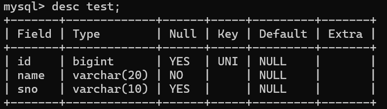 查看表结构会发现key列会有UNI标注