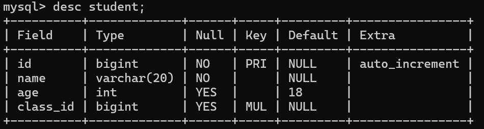foreign key (class_id) references class(id) # 创建外键约束