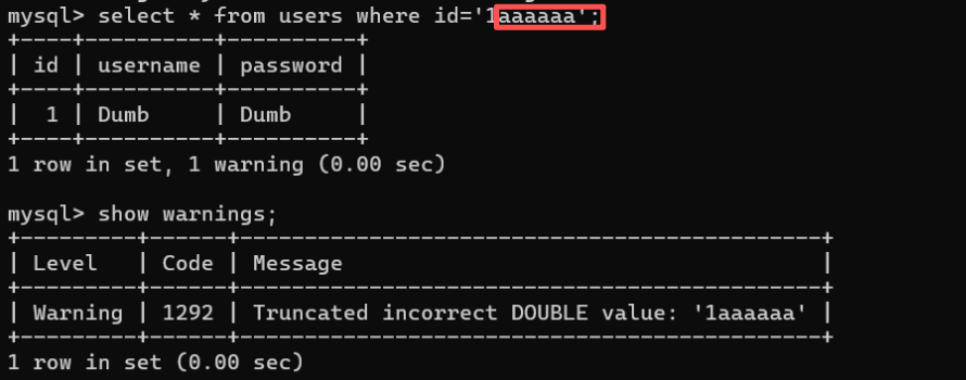 假设 user_id=1 是管理员,WAF 禁止直接访问 1。攻击者可以使用 user_id=1e0 来获取管理员数据。