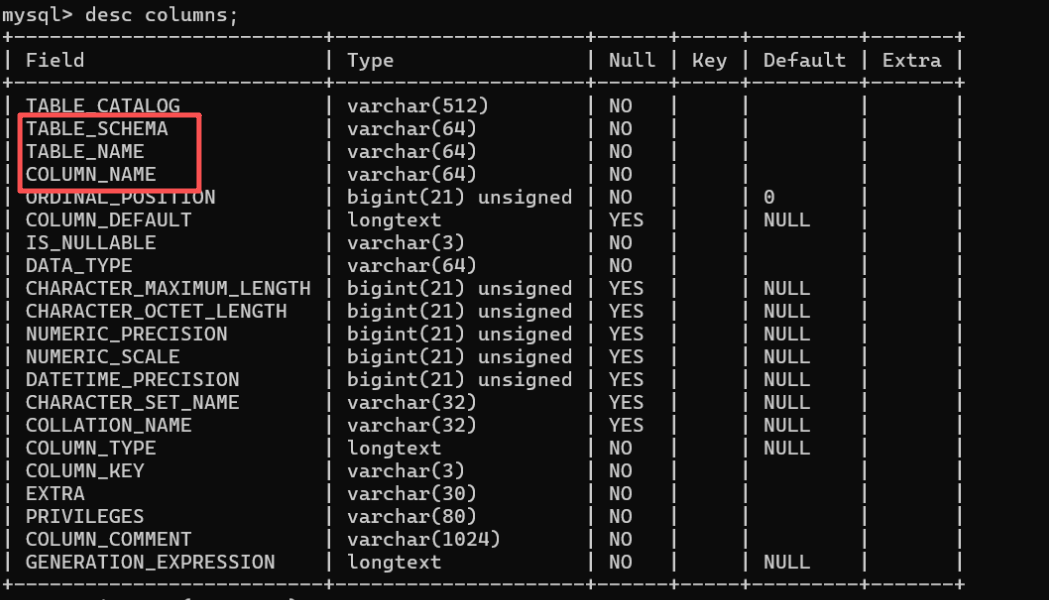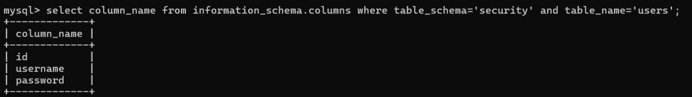 select column_name from information_schema.columns where table_schema='security' and table_name='users'