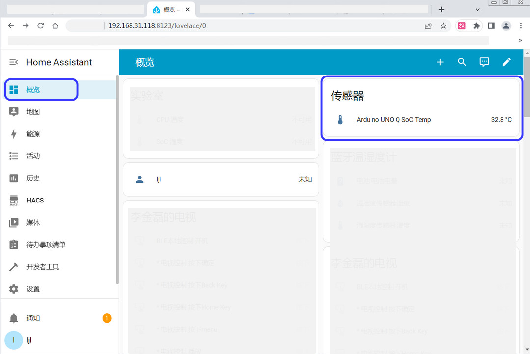 - 进入 HA 主页,刷新概览界面,可自动识别到 MQTT 传感器设备