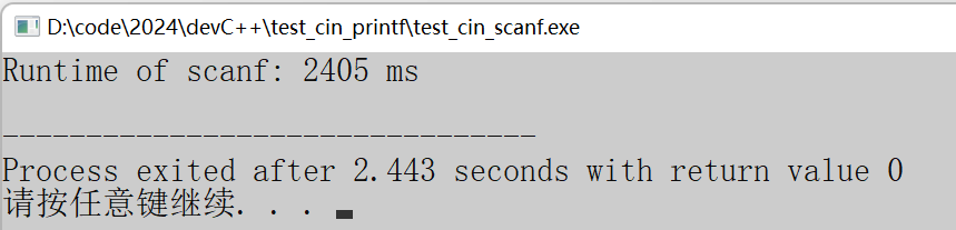 cout << "Runtime of scanf: " << t2 - t1 << " ms" << endl;