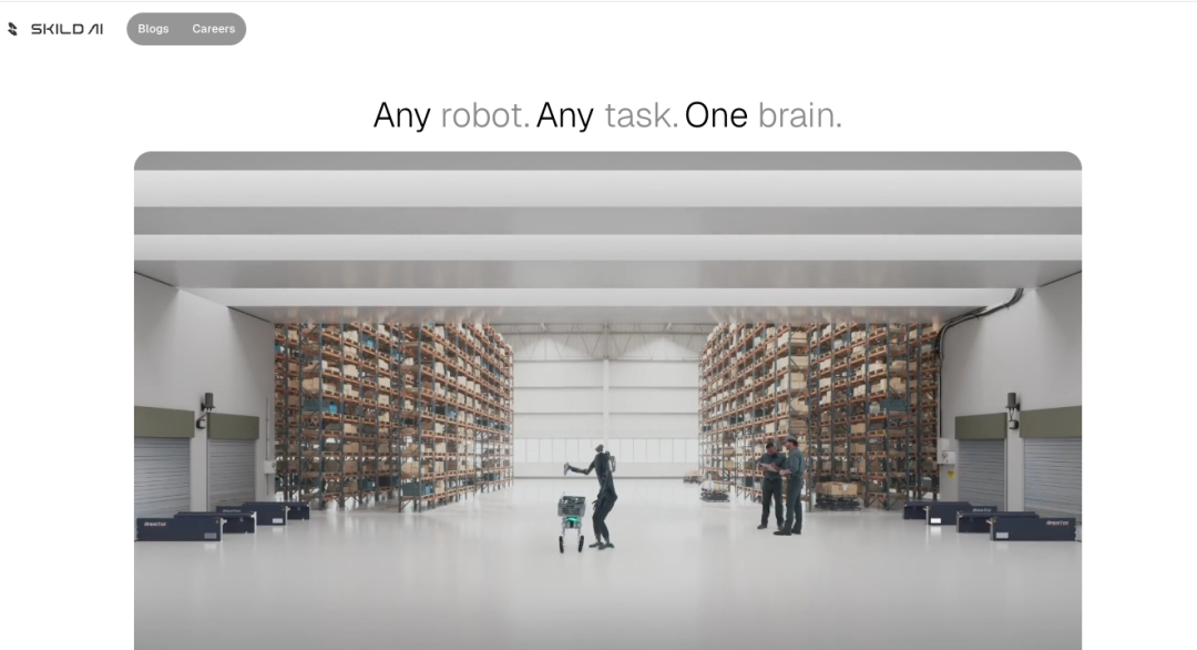 打开 Skild AI 官网,首先映入眼帘的就是这句极具野心的口号。在官方 X 账号上,以及创始人之一 Abhinav Gupta 前几天参加的 NDTV 采访中,都反复提到了这句被奉为宗旨的话:「任何机器人、任何任务、一个大脑」,这精准的概括了 Skild AI 与大多数机器人公司截然不同的独特之处。