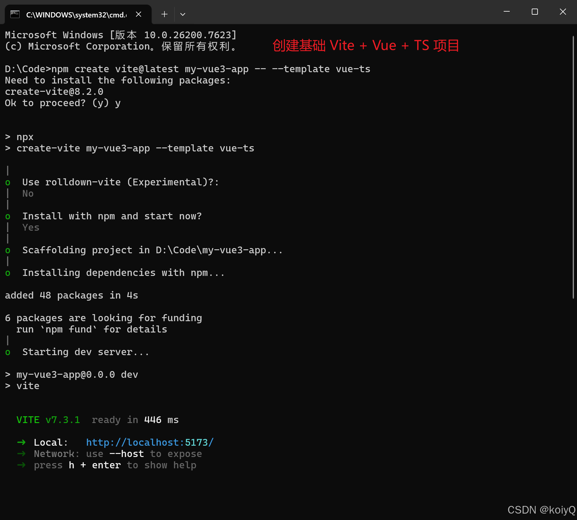 npm create vite@latest my-vue3-app -- --template vue-ts