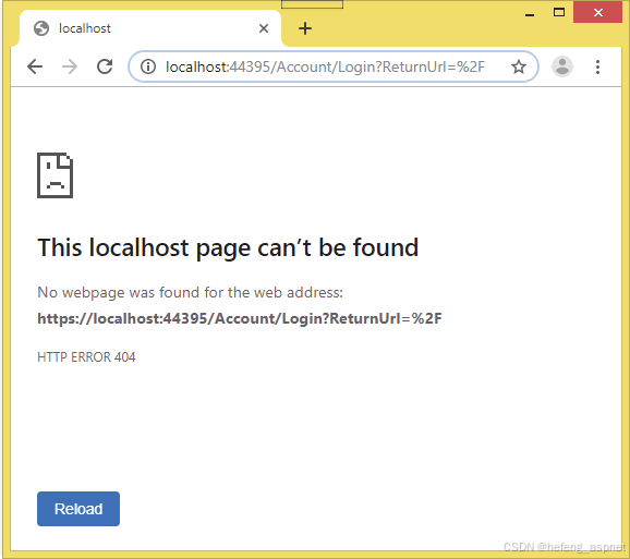 现在再次运行该应用程序,这次我们会看到一条消息,提示"找不到本地主机页面。HTTP 错误 404"。如下图所示: