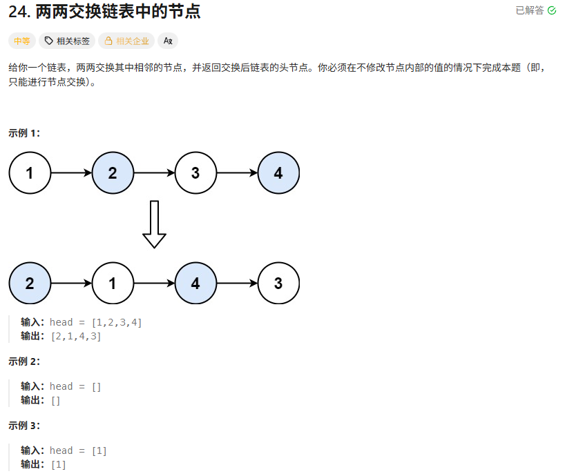 - 只修改节点值 :题目要求实际交换节点,而非仅修改
