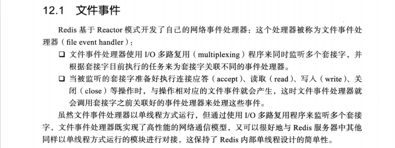 当被监听的套接字准备好执行连接应答(accept)、读取(read)、写入(write)、关 闭(close)等操作时,与操作相对应的文件事件就会产生,这时文件事件处理器就会调用套接字之前关联好的事件处理器来处理这些事件。