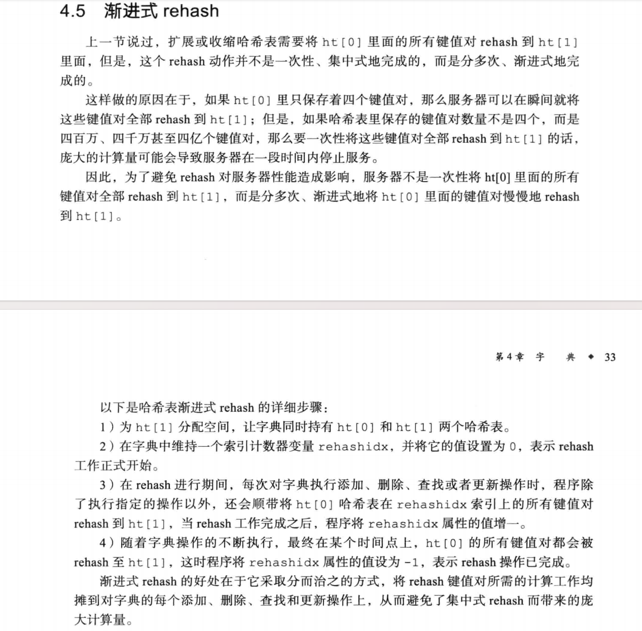 这样就巧妙地把一次性大量数据迁移工作的开销,分摊到了多次处理请求的过程中,避免了一次性 rehash 的耗时操作。