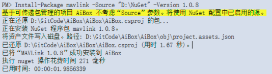 示例: Install-Package mavlink -Source "D:\NuGet" -Version 1.0.8