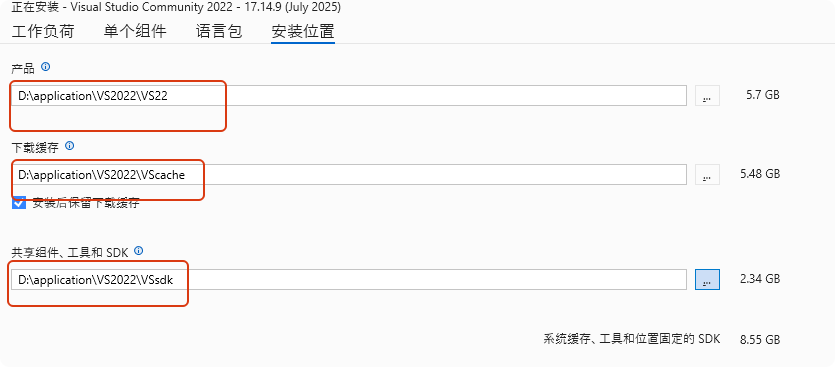 - 注意事项,路径使用英文、安装文件和缓存文件不同,最好一个大文件夹下再分两个文件夹。