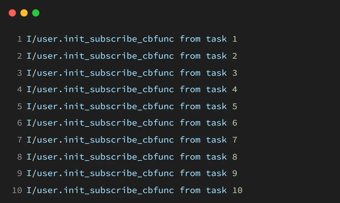 (2) 任意代码处执行 sys.publish(msg, ...),发布了全局 msg 消息,在等待这个全局 msg 消息的所有处于阻塞状态的 task 都能依次接收到此消息,并且从阻塞状态切换为运行状态继续运行