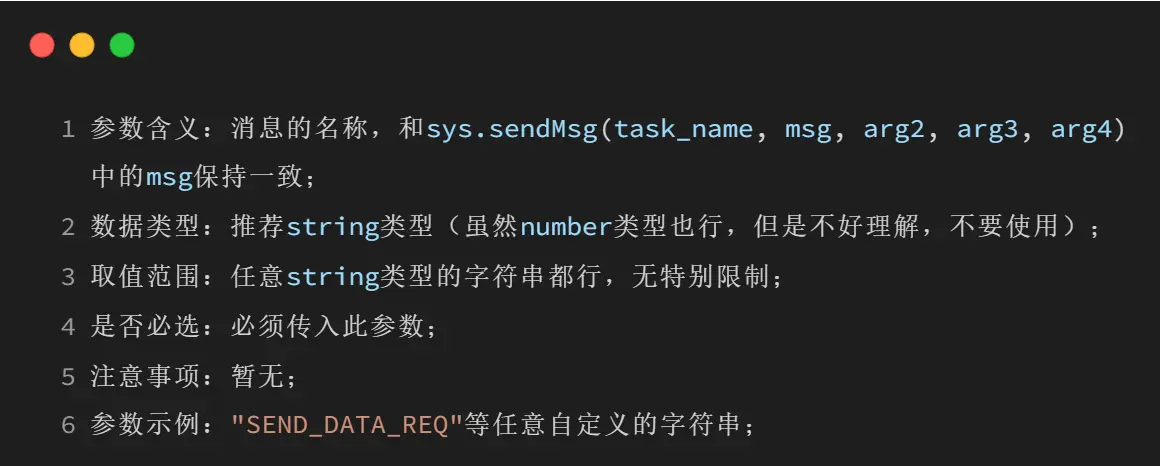 (1) 定向消息发布:sys.sendMsg(task_name, msg, arg2, arg3, arg4)