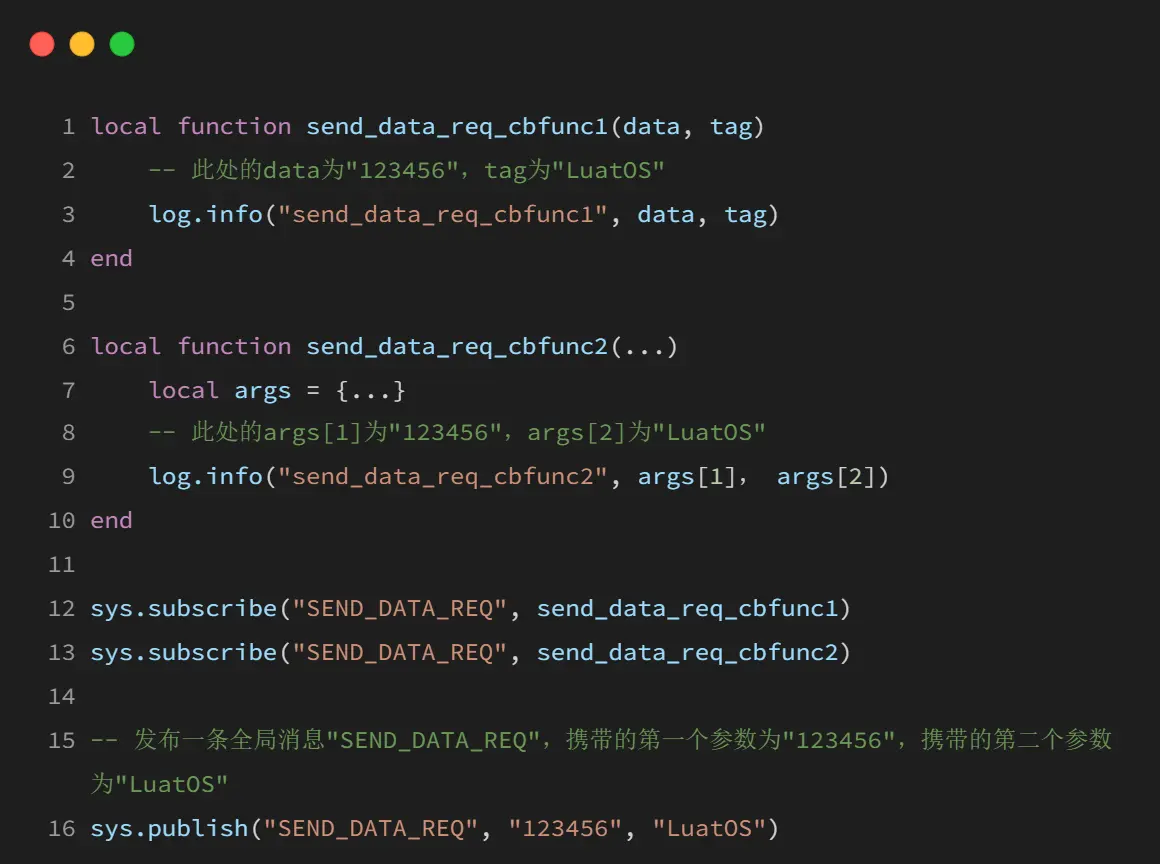 LuatOS用户在脚本程序中可以使用sys.subscribe和sys.waitUntil订阅和接收处理;
