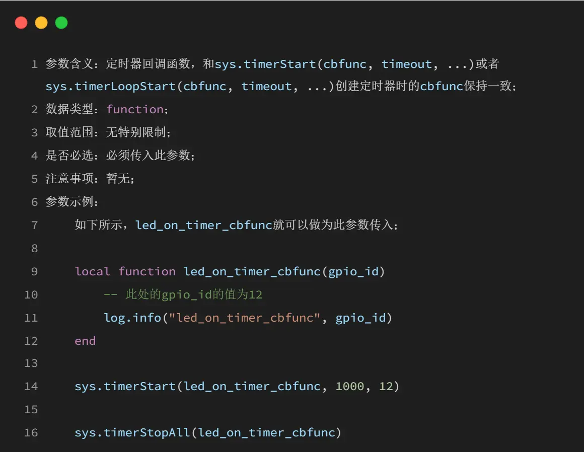 1、定时器 id;如果使用 sys.timerStart(cbfunc, timeout, ...)或者 sys.timerLoopStart(cbfunc, timeout, ...)创建定时器成功,会返回定时器 id;