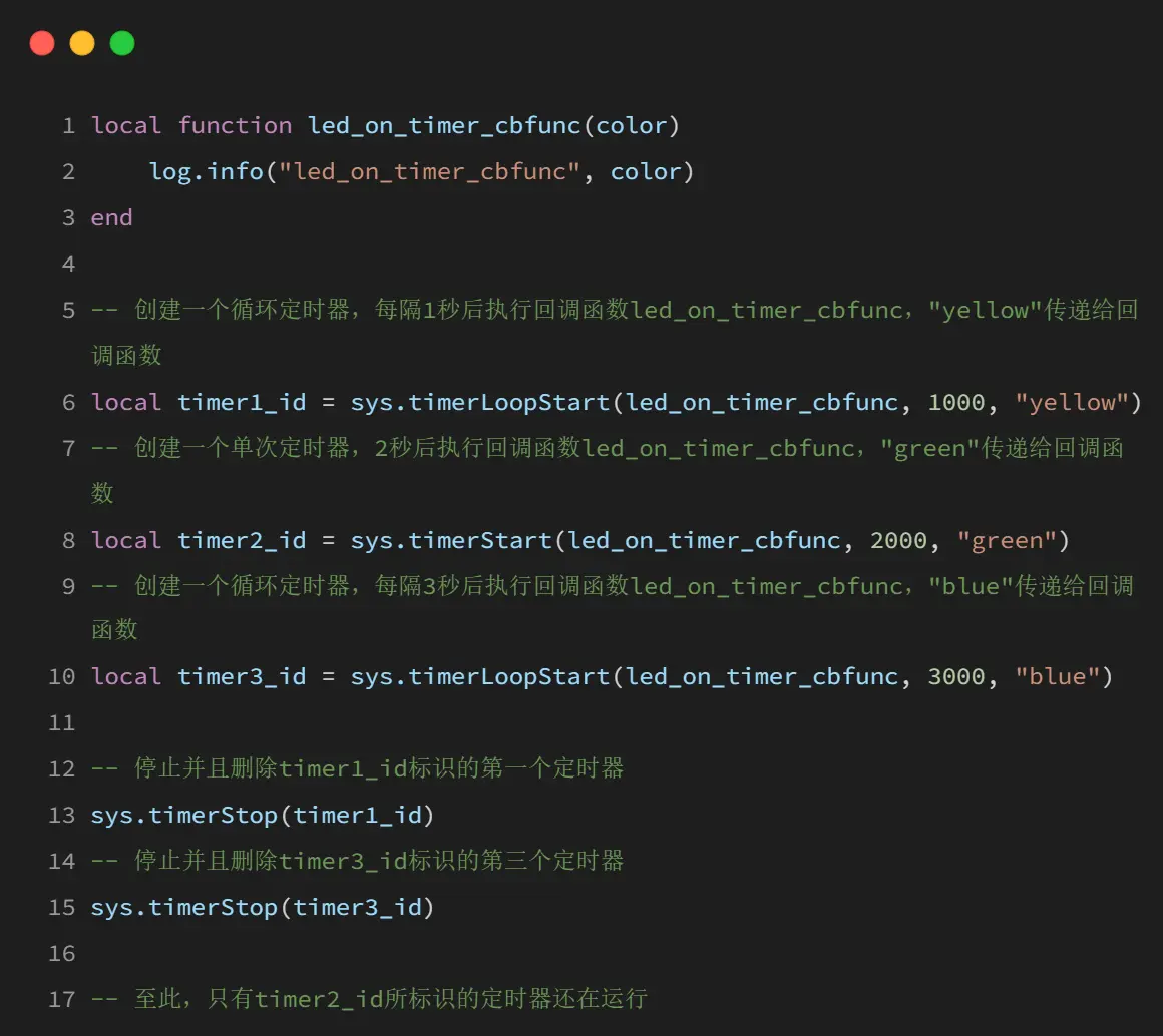 (3) timer_loop_start.lua:使用 sys.timerLoopStart 接口来验证可以同时运行的定时器数量;
