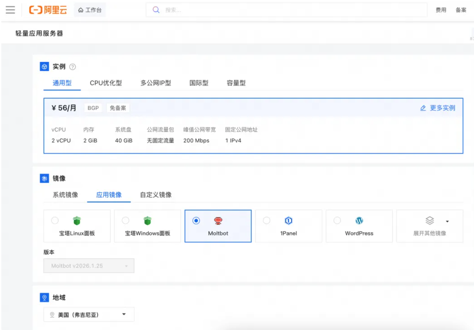 Step 1:服务器部署 这里的操作非常简单,进入轻量应用服务器控制台,点击「应用镜像」,直接选择新增的「Moltbot」镜像即可 。